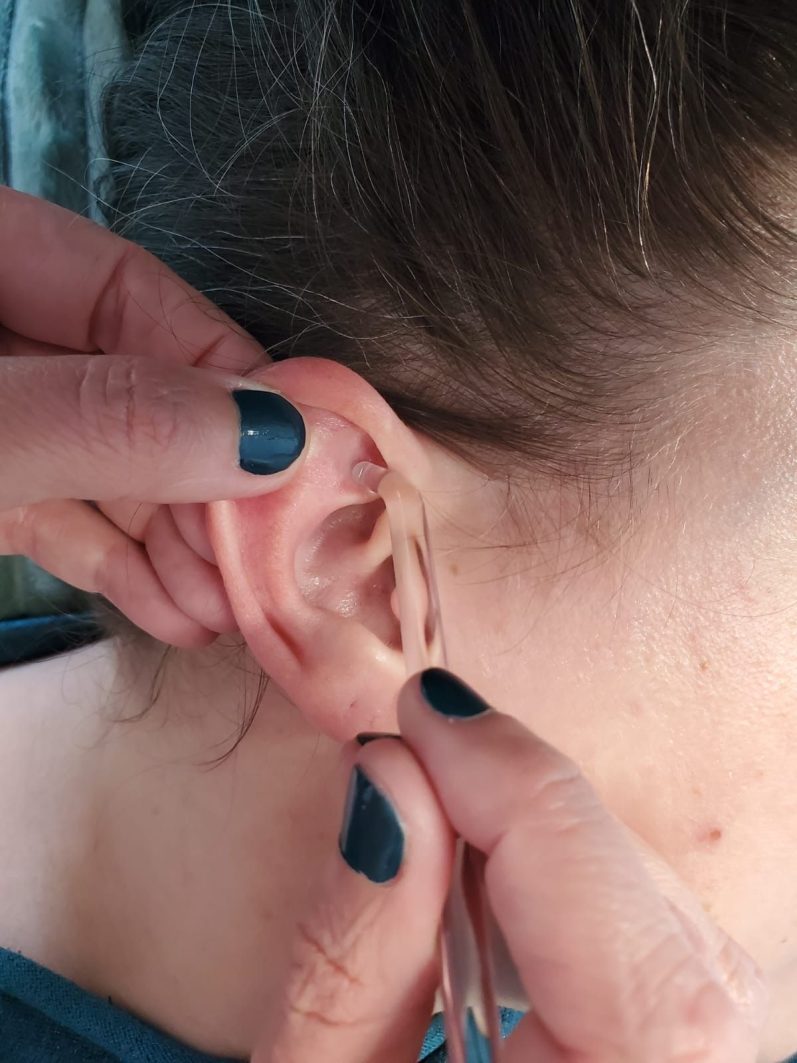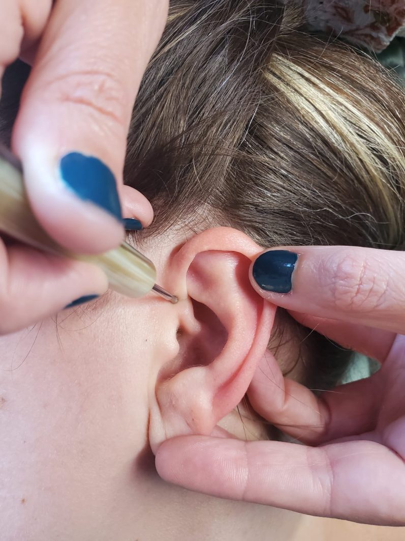L'auriculothérapie est une méthode française développée par le Docteur Nogier dans les années 50, elle est réservée aux médecins et se pratique avec des aiguilles semi permanentes.