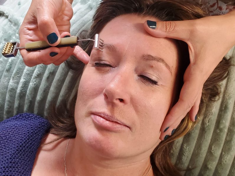 La stimulation se fait à partir d'outils non invasifs mécaniques ou fréquentiels (détecteur, roulettes, râteaux...) adaptés à la peau du visage.